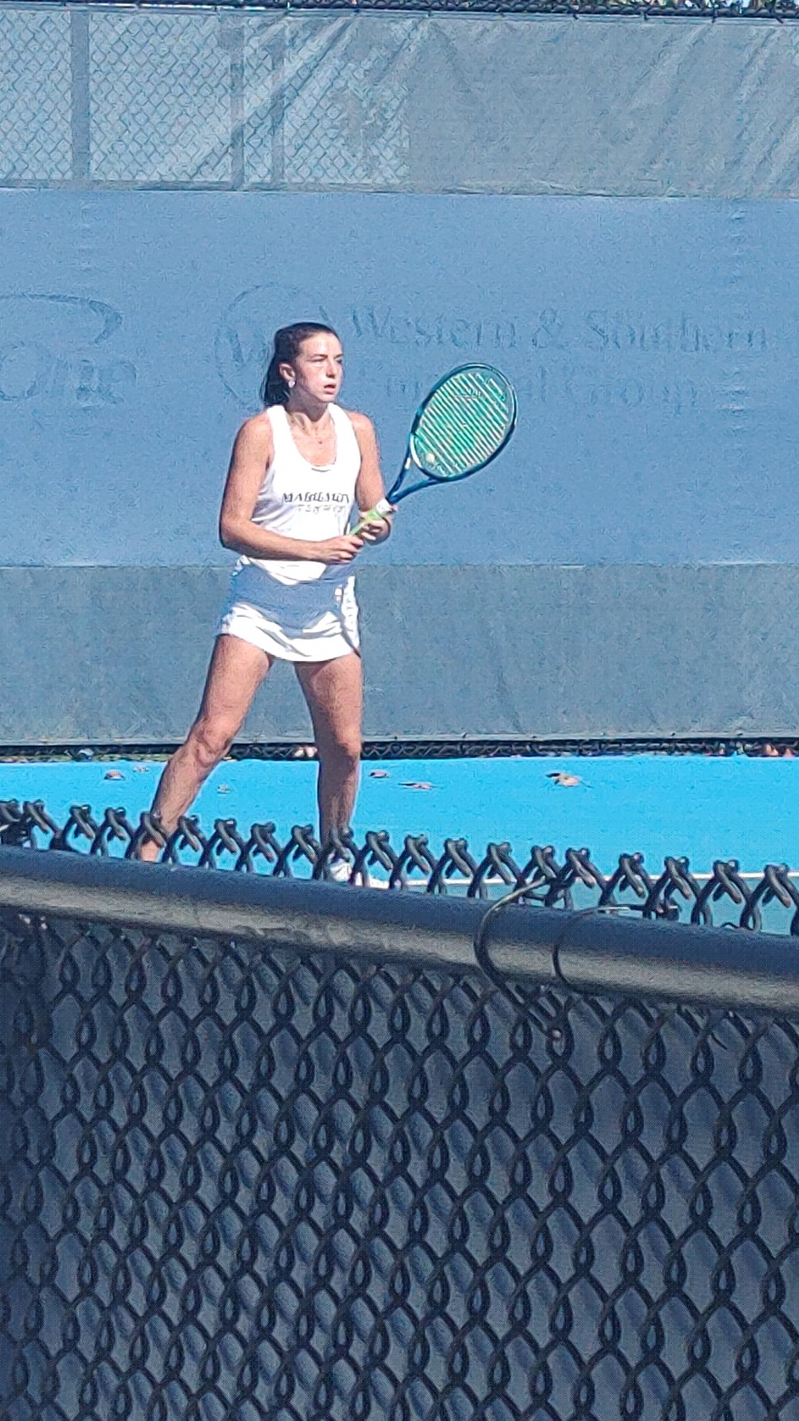 Doubles Team and an Indian Hill Single qualified for the state tournament this weekend at the Lindner Tennis Center in Mason. Lucy Hanser and Lauren Gaughan, Mariemont, lost in a tough first round match. Sophia Thompson, IH, won two straight matches to reach the semi-finals but lost to a strong opponent in the semis. Sophia came back to win the 3rd/4th match to finish 3rd in the state DII singles.